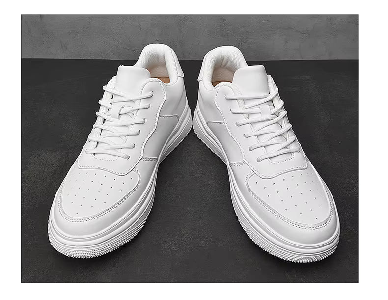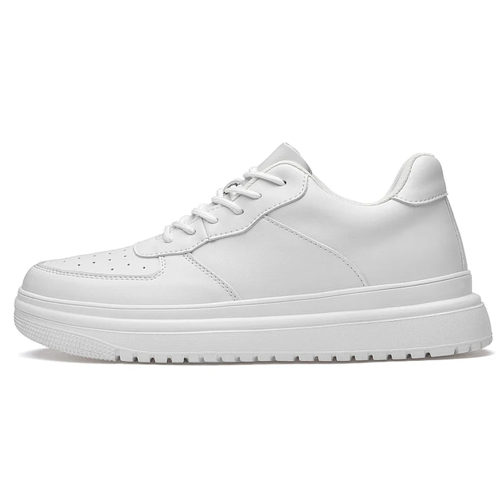 No. The elevation is integrated inside the sole, so you look taller without anything appearing unusual from the outside.